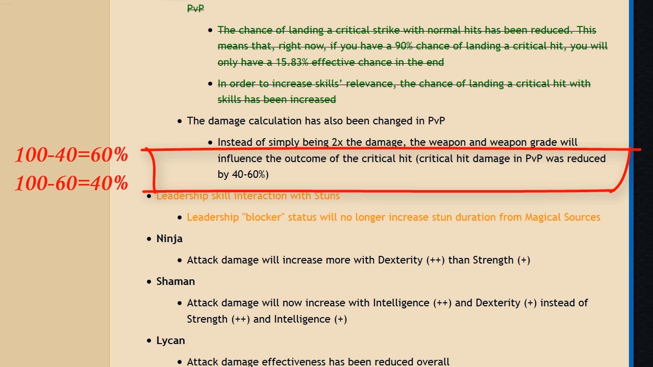 This makes actually a real reduction from less -80% to -120% from the critic damage before on live servers making it even lower than without crit damage... that is just absurd and unlogic, nobody will invest on that bonus anymore on pvp ridiculous...
