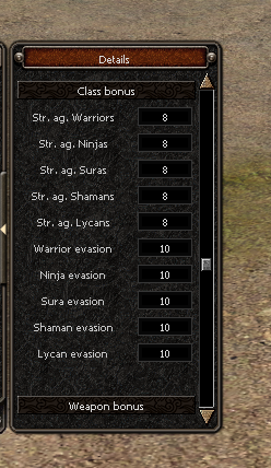 What I've noticed is that, without ANY items, alchemy etc, we have (or at least ninja have) 8 "strong" against Suras, Ninjas, Warriors, Shamans and 10 "evasion" against the same classes. Agains Lycans we have ZERO. Why is that? OK it was a new character, it was "gifted" with some advantages at that time to convince people play it...but now? Why Lycans still has advantages compared to other classes?